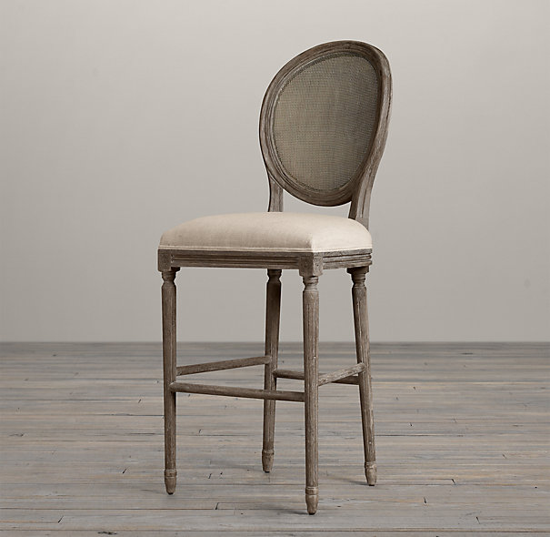 4. Vintage French Round Cane Back Upholstered Stool $149-449