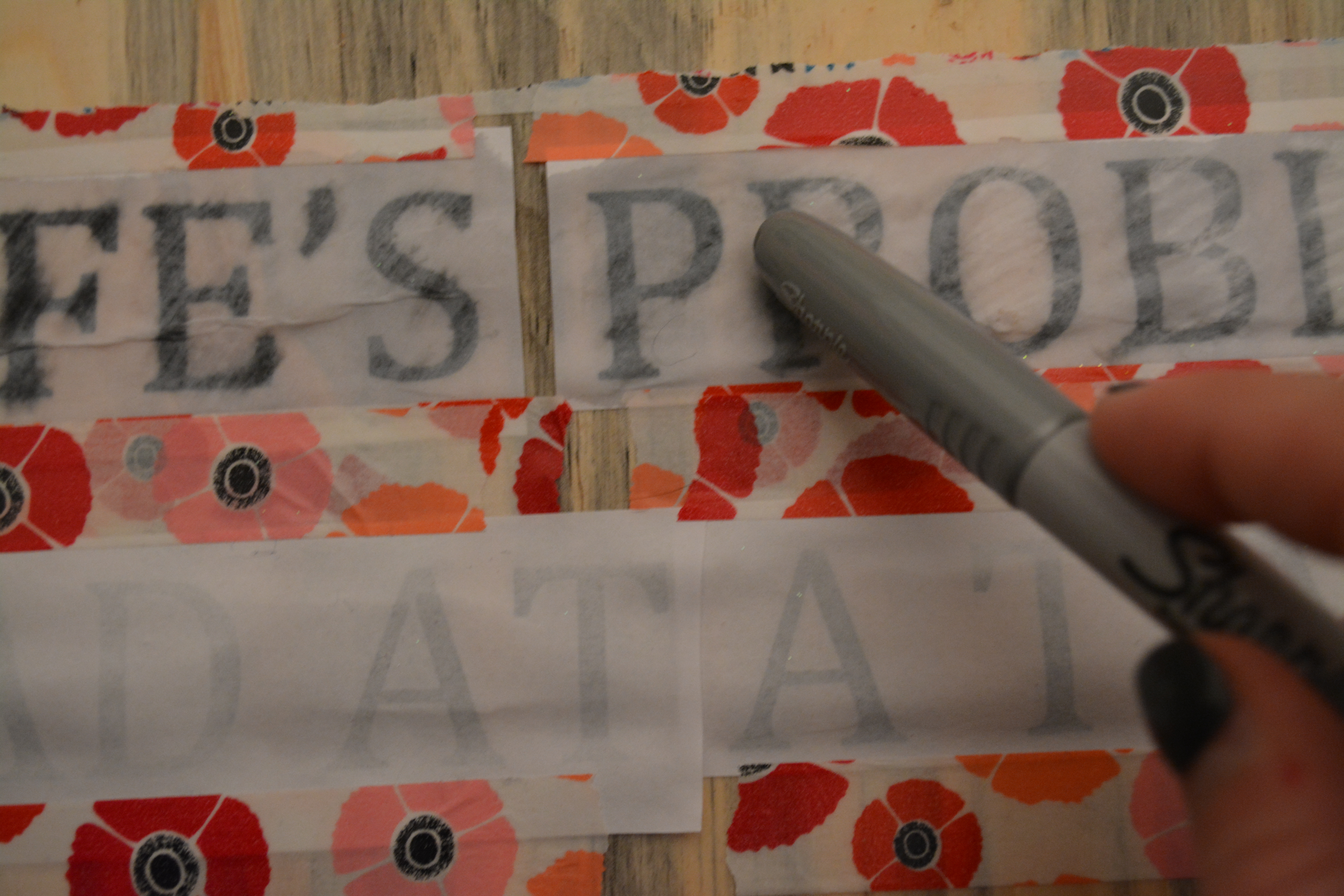 Once the letters and picture were printed, I cut everything out, lined them up as straight as possible, and taped them down.
