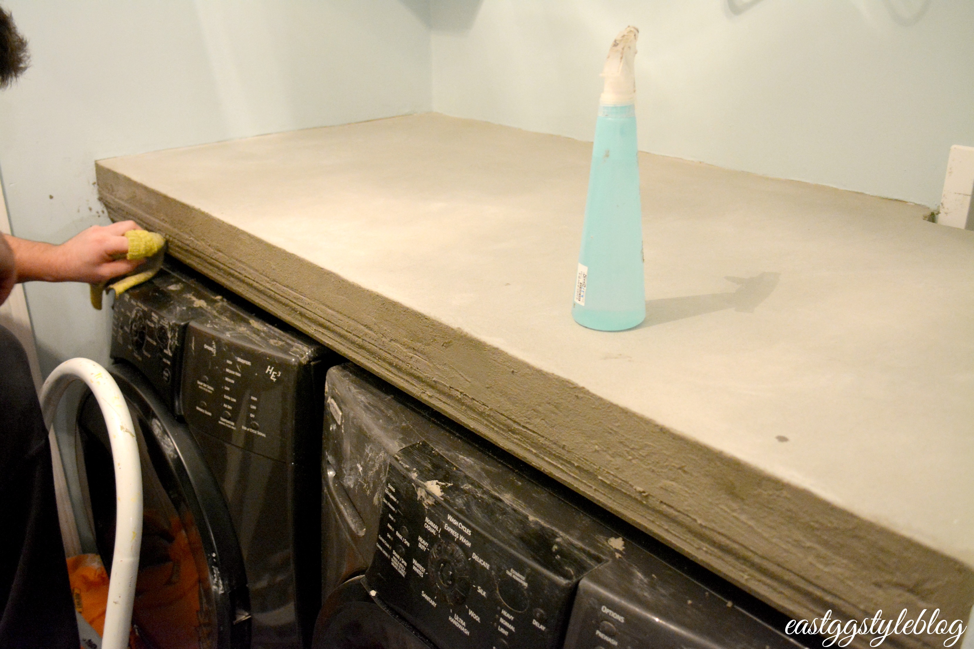 Once the base was in place, we covered the washer and dryer to make sure cement didn’t get all over.