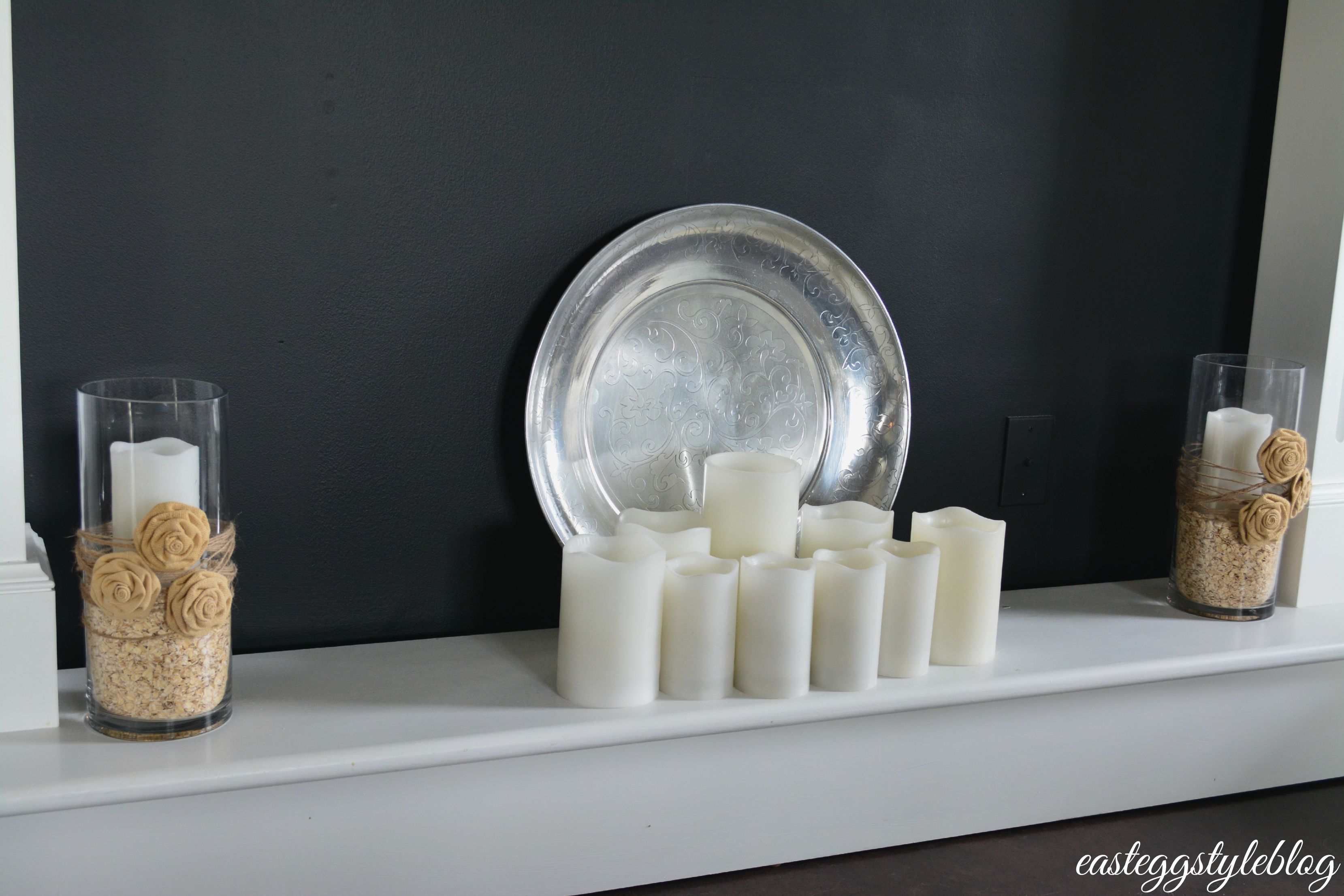 This inexpensive and quick project was perfect for my budget, and time constraints. I’m all about using things I have laying around my house to decorate, and that is exactly what I did for this week’s project! I’m all about the neutrals, so these cute fall candle holders were the perfect finishing touch for my fall mantel.
